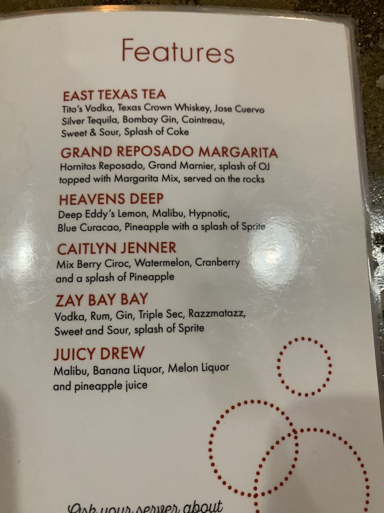 Located in Greenville, TX, Shenaniganz is an American restaurant known for its vibrant atmosphere and diverse menu. With amenities like pool tables, free Wi-Fi, and a full bar, this place is perfect for groups and kids alike. The menu features a variety of vegetarian options, along with happy hour specials and a range of dishes that cater to different preferences. The outdoor seating, heated for colder days, and the option to bring your furry friends make Shenaniganz a welcoming spot for all. Whether you're looking for a casual dining experience or a place to dance the night away, Shenaniganz has something for everyone. Don't forget to try their signature dishes and enjoy the lively ambiance that sets this restaurant apart from the rest. For reservations or takeout, call (903) 455-2065.